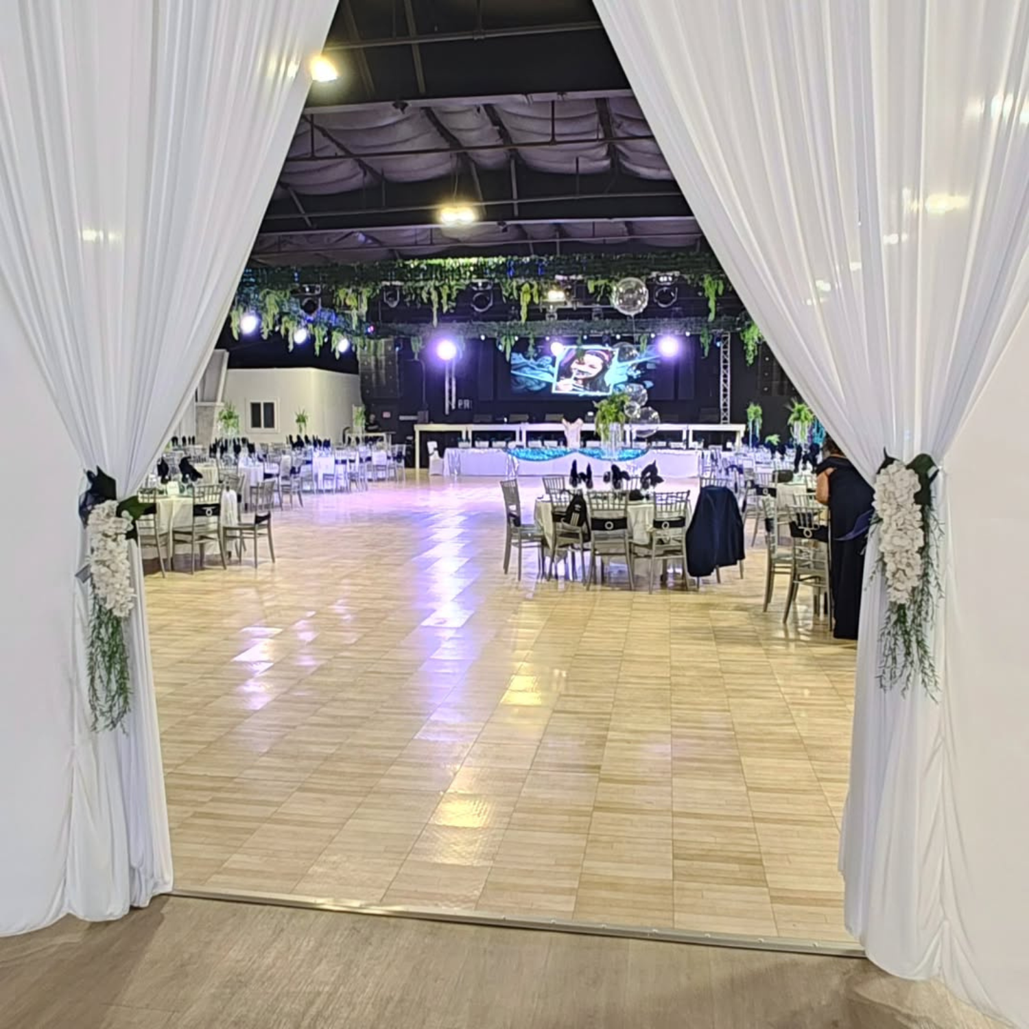 VIP Event Centeroffers sophisticated interior design that serves as the perfect backdrop for any celebration. The venue features high ceilings with crystal chandeliers and luxurious finishes. The neutral color palette and timeless design elements seamlessly complement any event theme.